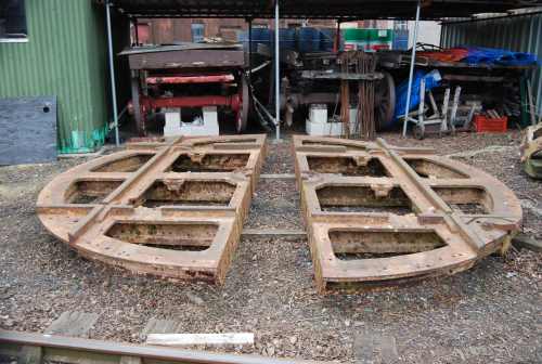 The origins of this turntable are unclear, but in 1868 the Cornwall Railway was asked to do some additional work to the lines on the east side of Devonport’s North Basin. This work was to include a 13ft diameter Heanett & Spinks turntable – it is believed this is the turntable which has been restored for static display at Didcot. The turntable was modified to accept standard-gauge stock at some stage, and set as a fixed through line. The modifications have been removed as part of the restoration work. |