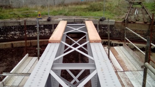 Installed by the Caledonian Railway. Listed structure; was out of use/derelict but still connected to the national network. Turntable bridge removed for restoration by Ferryhill Railway Heritage Trust. Later craned back into place in April 2018. Completion due March 2019 |
