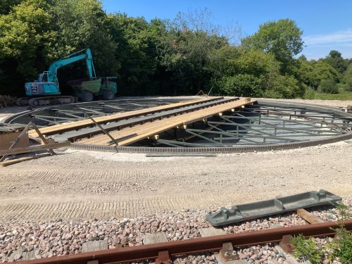 Installed at Hither Green depot which opened in 1933. Latterly in use for rotating locomotives and maintenance vehicles. Located at the northernmost point of the site. Moved by Rother Valley Railway to Robertsbridge Feb 2020 after refurbishment. Reinstallation is now nearing completion Aug 2022. It is rail-accessible from the Hastings mainline. Main photo taken at RVR Robertsbridge. |
